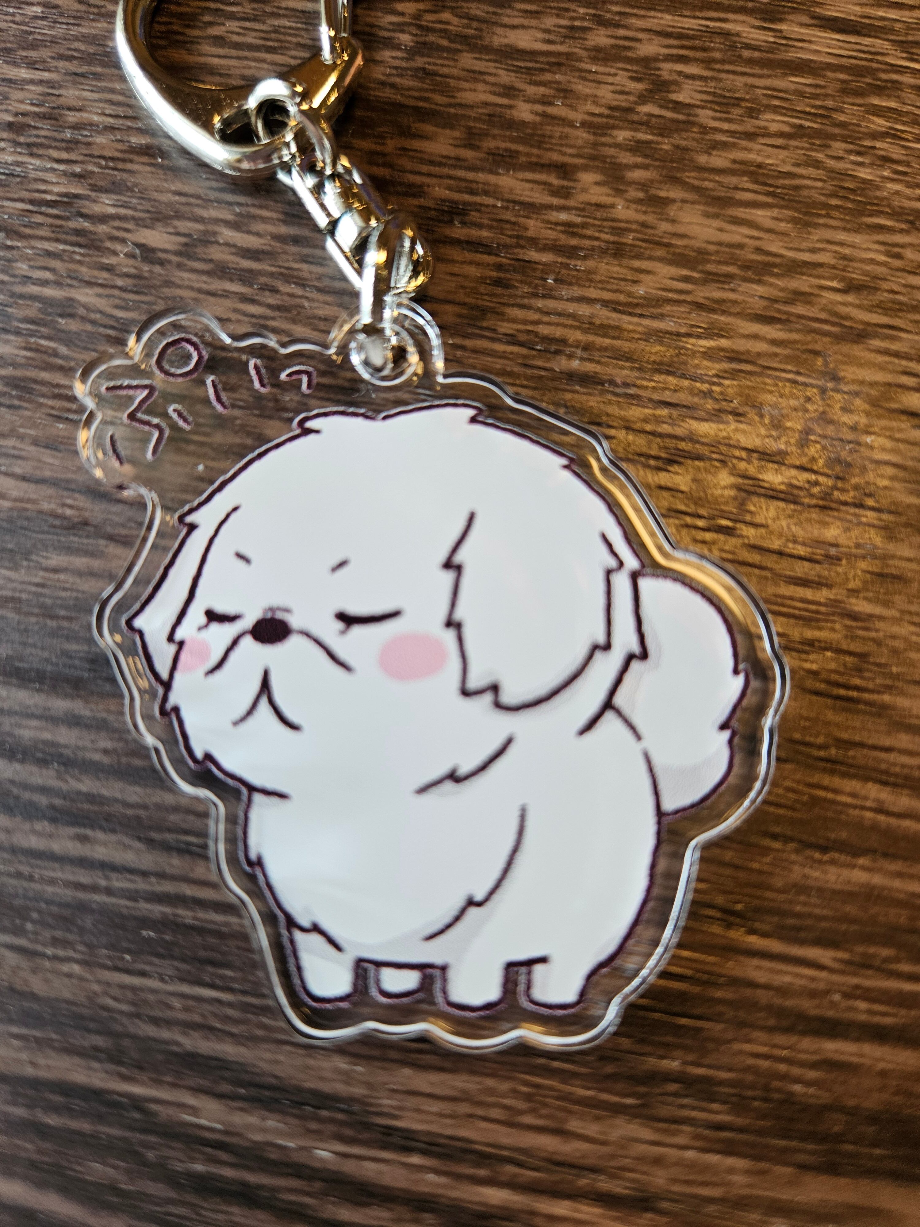 ペキニーズの女の子、ぺきこのアクリルキーホルダー。